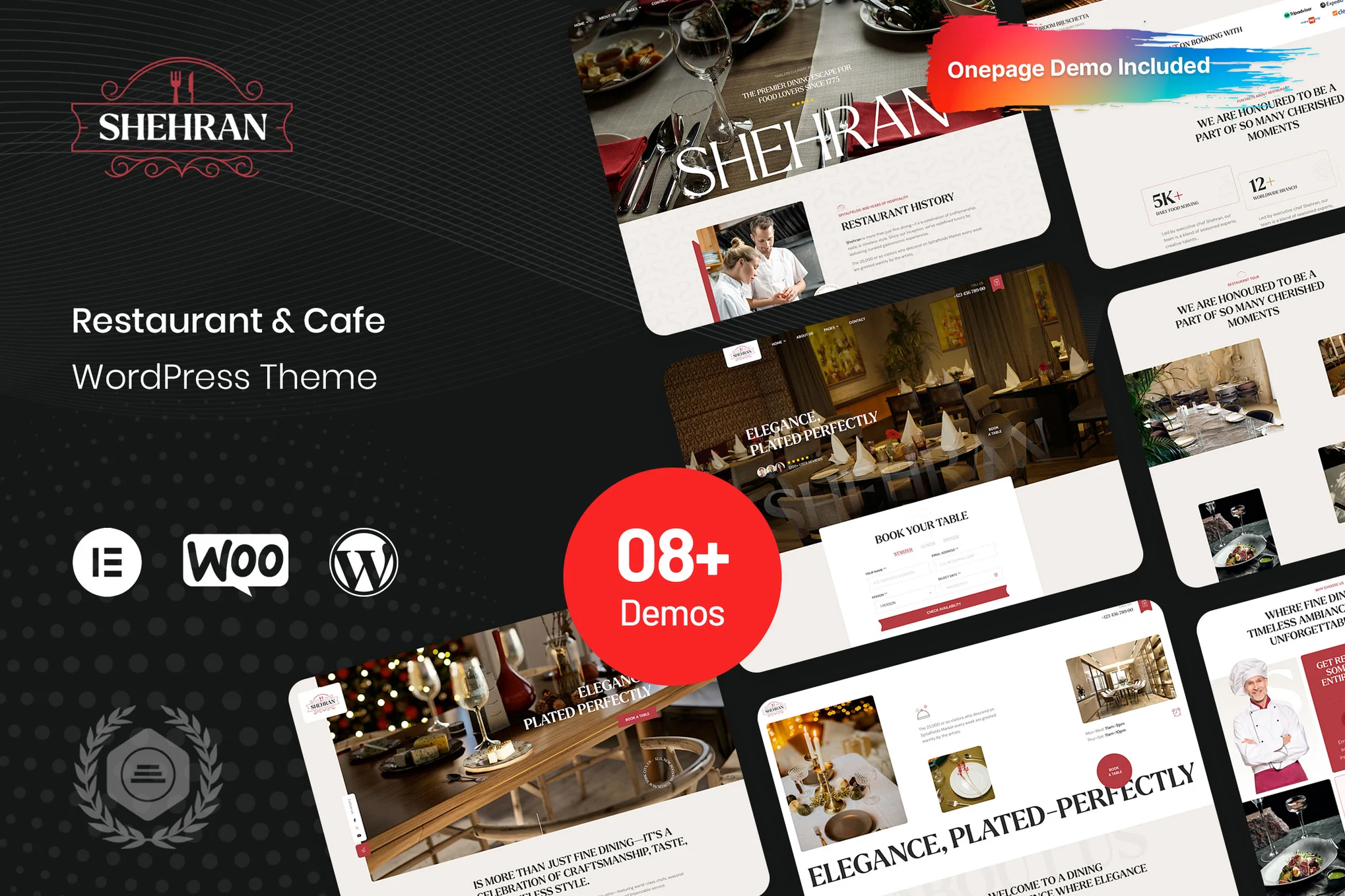 مدرن و پیچیده: این دو کلمه بهترین توصیف برای قالب وردپرس رستوران Shehran، یک قالب رستوران وردپرس هستند که به طور خاص برای وبسایتهایی که توسط صاحبان رستوران، کافه و بیسترو اداره میشوند، طراحی شده است. هر مجموعه پذیرایی سبک و حال و هوای خاص خود را دارد و این قالب رستوران وردپرس به شما این امکان را میدهد که از بین دموهای مختلفی که برای هر نوع مجموعه غذایی مناسب هستند، انتخاب کنید. اطمینان داشته باشید که میتوانید طرحی را پیدا کنید که به طور کامل با کسب و کار شما مطابقت داشته باشد، خواه رستوران، کافه، بیسترو، نانوایی، کافه تریا، کافی شاپ، پیتزا فروشی یا هر کسب و کار مرتبط با غذا باشد. قالب وردپرس رستوران Shehranبا صفحه ساز Elementor در وردپرس ارائه میشود. این قالب با بهرهگیری از جدیدترین فناوریهای وب، تجربه کاربری لذتبخش و زیباترین ترندهای طراحی، بستری را فراهم میکند تا به سادگی عناصر را با کشیدن و رها کردن، سبکها را انتخاب کنید و قبل از اعمال تغییرات، ظاهر وبسایت خود را در پیشنمایش زنده مشاهده کنید. اگر در ابتدای کار با راهاندازی وبسایت خود مشکل دارید، نگران نباشید. با محتوای دموی آماده و آموزشهای ویدیویی همراه این قالب، شما هرگز در تاریکی نخواهید ماند و میتوانید وبسایتی عالی برای رستورانها، فست فود، رستورانهای دریایی، دستورالعملهای غذا، نانواییها، برگر، کافیشاپها و وبسایتهای پیتزا فروشی ایجاد کنید. علاوه بر این، این قالب دارای Elementor و Revolution Slider است که به شما امکان میدهد طرحبندیهای شگفتانگیزی را بدون نیاز به دانش برنامهنویسی ایجاد کنید.