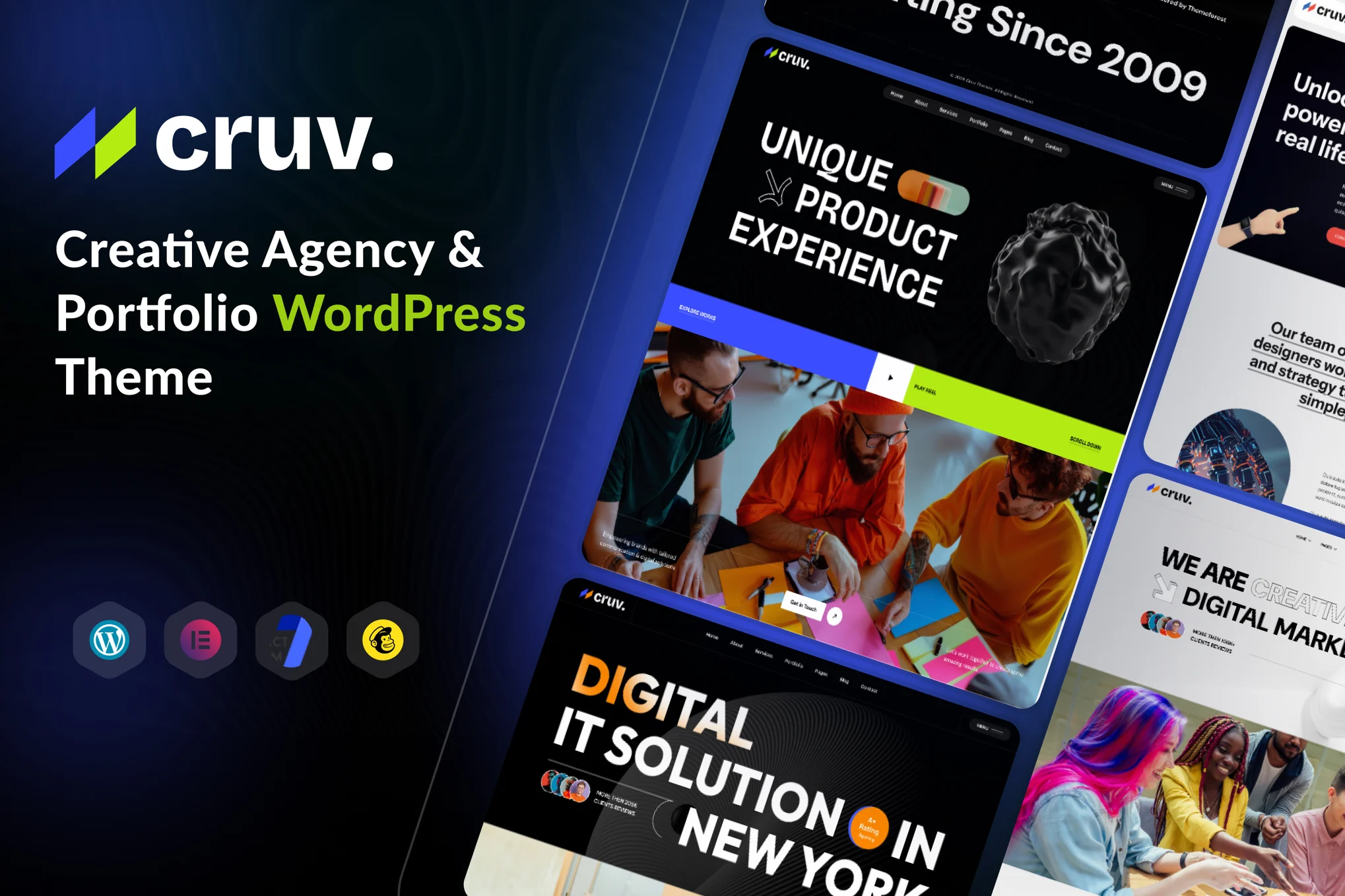 قالب وردپرس آژانس خلاق و نمونهکار Cruv یک قالب وردپرس مدرن، شیک و بسیار انعطافپذیر است که برای آژانسهای خلاق، فریلنسرها، طراحان و متخصصان متمرکز بر نمونهکار طراحی شده است. با جلوههای بصری چشمنواز، زیباییشناسی تمیز و تعاملات روان، Cruv به شما کمک میکند تا یک حضور آنلاین متمایز ایجاد کنید که واقعاً خلاقیت شما را منعکس کند.