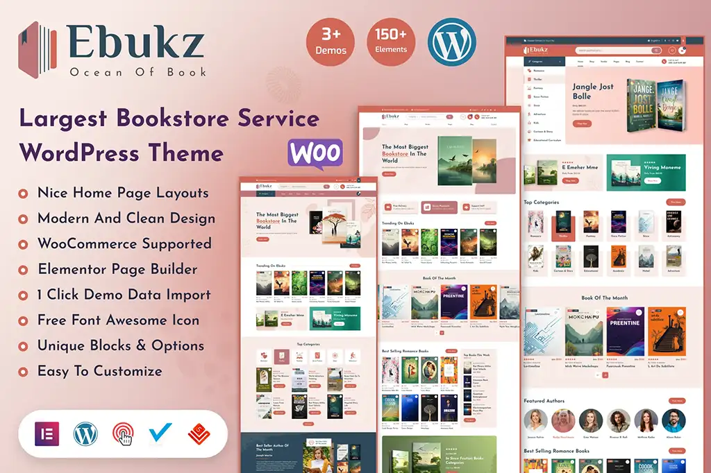 Ebukz یک قالب وردپرس مدرن و زیبا است که به طور ویژه برای نویسندگان، ناشران، بازاریابان، مربیان و تولیدکنندگان محتوای دیجیتال طراحی شده است تا بتوانند کتابهای الکترونیکی خود را با حداکثر تاثیر به فروش برسانند و تبلیغ کنند. قالب وردپرس Ebukz با در نظر گرفتن نرخ تبدیل، به شما امکان میدهد ویژگیها، مزایا، فصلها، نظرات، جوایز و ارزش کتاب الکترونیکی خود را به شکلی تمیز و حرفهای به نمایش بگذارید. چه در حال معرفی یک کتاب جدید باشید، چه در حال ایجاد یک قیف فروش، یا ساختن یک کتابفروشی دیجیتال کامل – Ebukz همه چیز مورد نیاز برای موفقیت شما را در اختیار دارد.